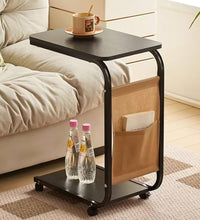 C-shaped table that easily slides under the sofa, giving you a comfortable space for your coffee, laptop, or books.